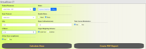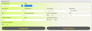 Now when opening the VirtualDoseCT page, the default screen has a field for CTDIvol (in addition to the ones for kVp and beam collimation, plus the other factors necessary to describe the patient and the scan). From these, the patient dose can be displayed on the screen or downloaded in a PDF report.